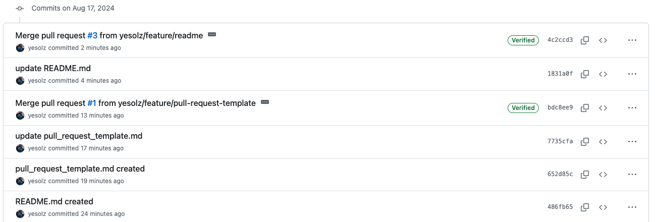- PR ๋ฉ์์ง ์ ๊ฒฝ ์ธ ๊ฒ! (++ PR Template ์ค์ ๊ฐ๋ฅํจ !)